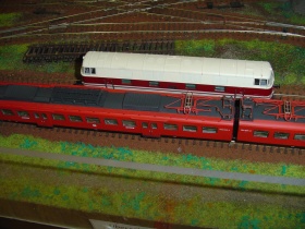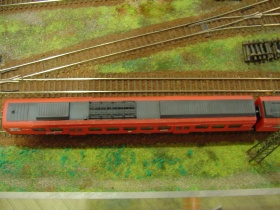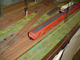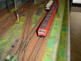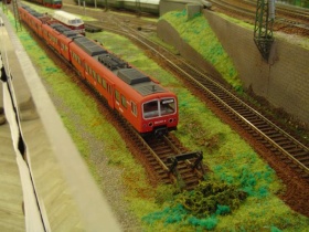 | Auf der H0-Anlage der Magdeburger Eisenbahnfreunde fährt ein Modell dieses Triebzuges. Es ist auf der Anlage die Stammstrecke der Magdeburger S-Bahn nachgebildet. Die folgenden Fotos entstanden auf einer Ausstellung: | ||
