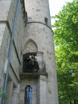 ![]() Das Brautpaar auf dem Turm der Tillyschanze.