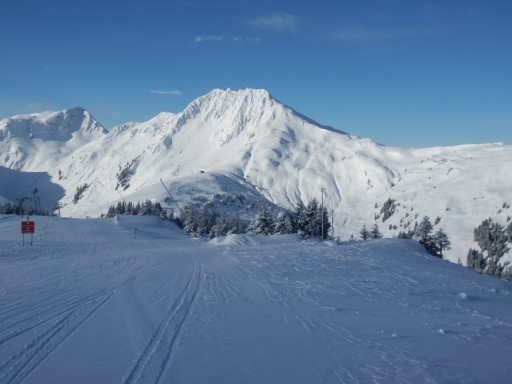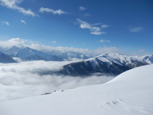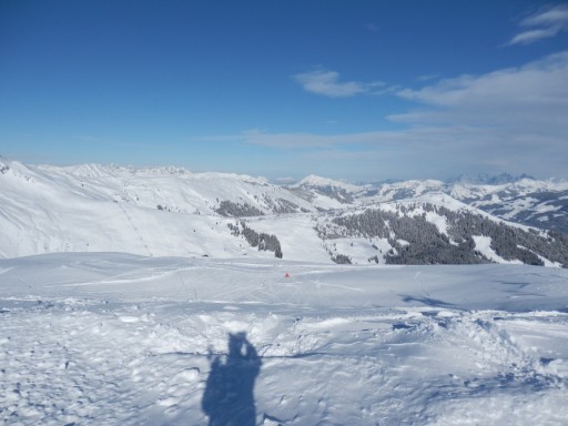 ins Skigebiet. Die wenigen Wolken stören nicht... |