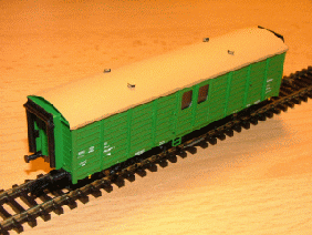 Der Standardhilfszug wurde auch - ebenfalls in TT - von der Fa. Hohmann in Halberstadt als Fertigmodell angeboten. Man konnte zwischen zwei Varianten: grün / Epoche IV / DR und rot / Epoche V / DB AG wählen. Die ersten Modelle fertigte die Fa. Hohmann aus den Bausätzen der Fa. Reuter. Später wurden die Modelle aus Resin gegossen. | ||